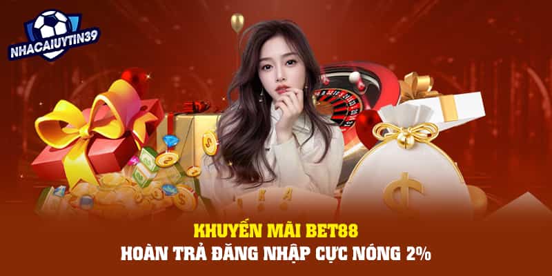Bên cạnh các chương trình ưu đãi siêu khủng dành cho cược thủ, nhà cái Bet88 cũng cung cấp ưu đãi hoàn trả tiền cược cực hời với 2% cho các lượt đăng nhập hằng ngày áp dụng cho các trò chơi từ thể thao, game bài đến xổ số, lô đề online. Do đó, anh em cần duy trì tần suất đăng nhập mỗi ngày để mở ra cơ hội nhận về tiền thưởng khủng từ hệ thống nhà cái.