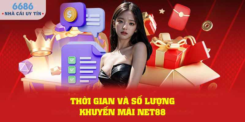Mỗi chương trình khuyến mãi Net88 sẽ có thời gian cụ thể và số lượng ưu đãi cũng có hạn. Nên anh em bet thủ cần chú ý đến thời gian diễn ra cũng như số lượng ưu đãi để tính toán hướng đi hợp lý cho bản thân.